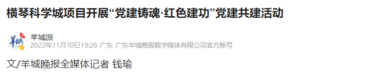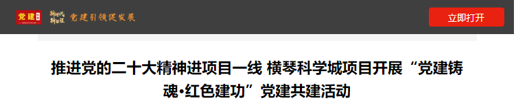 “本次‘黨建鑄魂·紅色建功’黨建共建活動是在大橫琴集團打造橫琴科學(xué)城項目黨建聯(lián)建生態(tài)圈的基礎(chǔ)上的一次深化拓展,對推動黨建和項目建設(shè)的融合發(fā)展,引導(dǎo)一線黨員堅定理想信念,牢記黨的宗旨,增強責(zé)任擔(dān)當,有著積極意義,將進一步推動黨的二十大精神在重大項目一線落地見效?!贝髾M琴集團黨委書記田偉介紹。