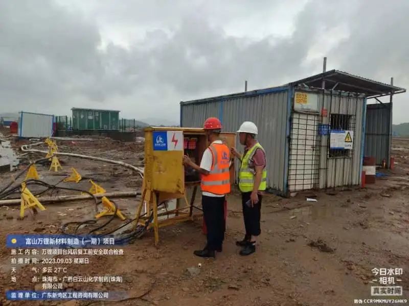 在斗門大橫琴5.0產(chǎn)業(yè)新空間萬鋰新材料(一期)項目現(xiàn)場,開展了臺風(fēng)后復(fù)工復(fù)產(chǎn)安全大檢查,現(xiàn)場組織排水、圍擋修復(fù)各項工作。