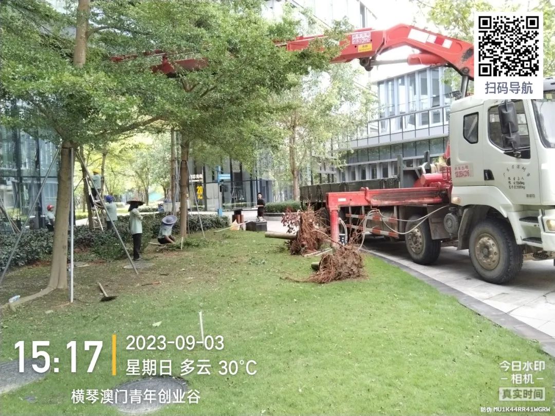 第一時間對園區(qū)環(huán)境進行清障復(fù)原,完成園區(qū)所有枯樹樹葉清理、樹木扶正,樹撐檢查加固;完成園區(qū)公共垃圾桶、煙灰柱、地毯復(fù)原工作;檢查受災(zāi)情況并進行修復(fù),檢查設(shè)備機房、電梯是否正常運行等,確保企業(yè)可正常辦公。其中橫琴國際科創(chuàng)中心園區(qū)應(yīng)急避難場所本次接待人員約1500人次,產(chǎn)生生活垃圾約3噸,人員撤離后已及時清理。