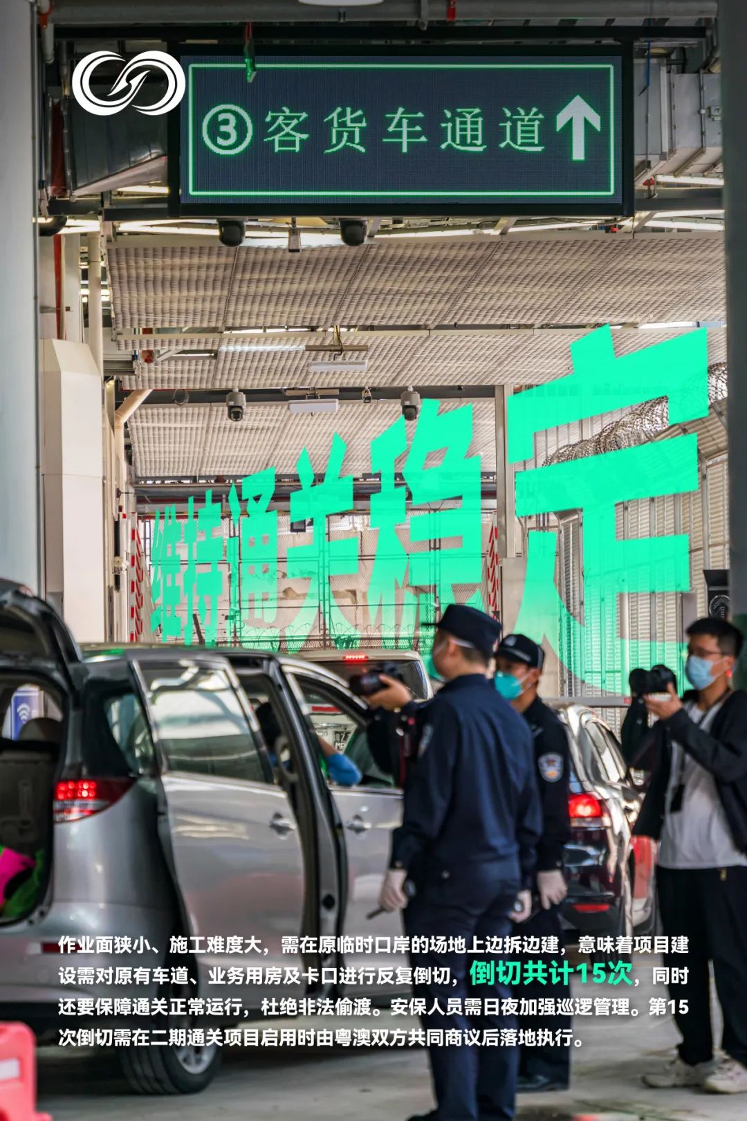 橫琴口岸二期通關(guān)項(xiàng)目F1區(qū)永久卡口倒切完成,滿足通車條件。