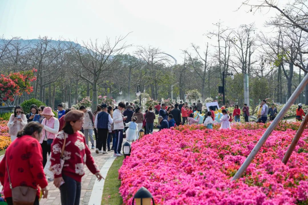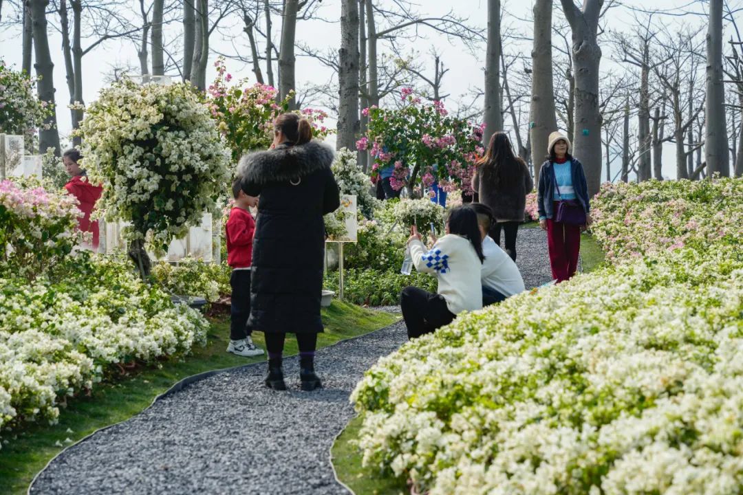 其中,花海長(zhǎng)廊的簕杜鵑園成為熱門打卡地,色彩斑斕的花朵絢爛盛放,設(shè)計(jì)師將靈感奇思揉進(jìn)景觀空間四個(gè)分區(qū),占地總面積達(dá)5000平方米,打造冰天雪地-粉妝玉砌-紅妝素裹-前橙似錦四大板塊的簕杜鵑專類展園,引來(lái)大量游客前來(lái)拍照打卡。
