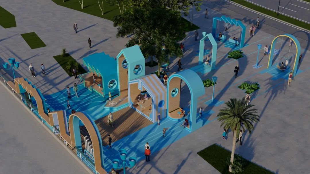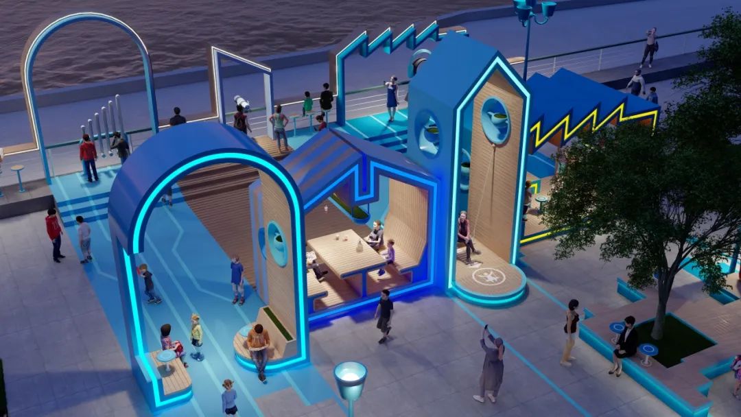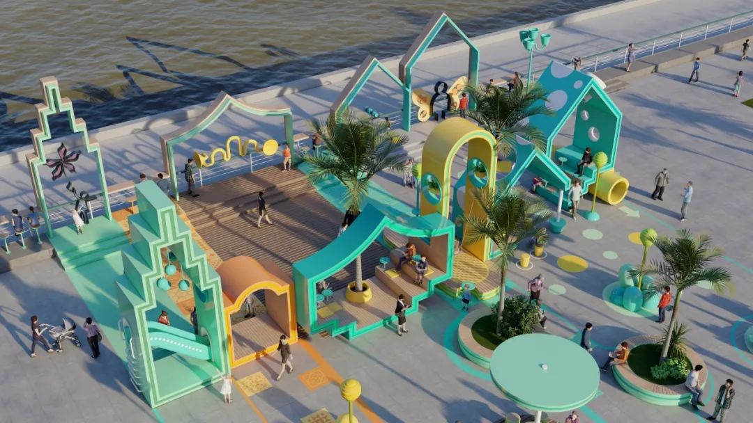 在一個個形態(tài)各異的“城市小屋”串聯(lián)下,分別以綠色、藍色為主色調的城市客廳已基本成型。