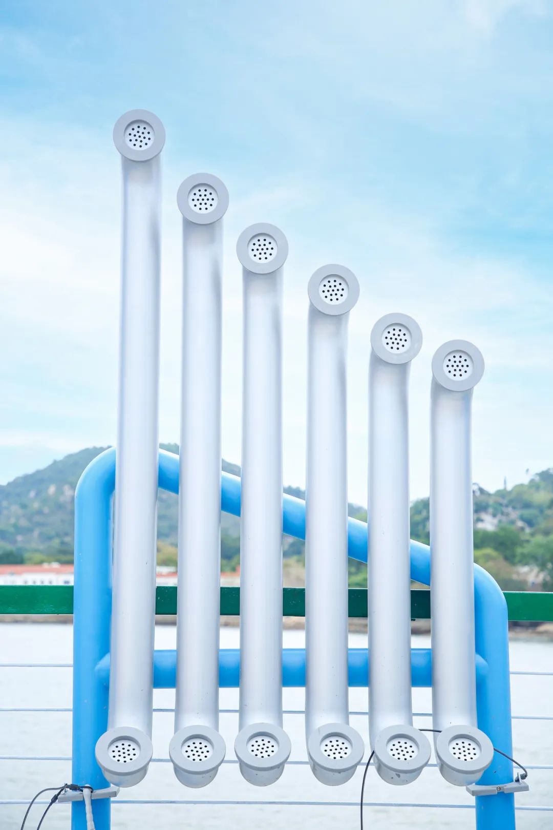 城市家具的設計風格,充分融合了粵澳文化和橫琴碼頭地域特色與周邊環(huán)境和諧相融,高顏值的城市家具旁,便是如畫的風光,放眼望去,充滿“藝術范”的城市家具與碧海藍天交相輝映,令人心曠神怡。