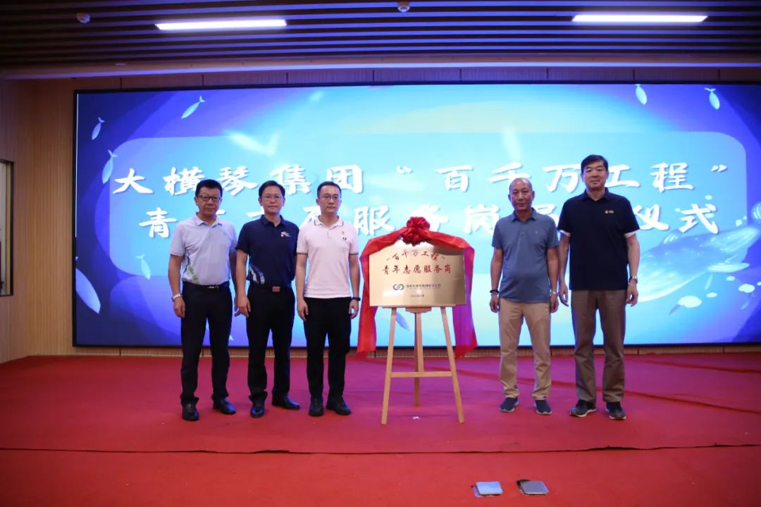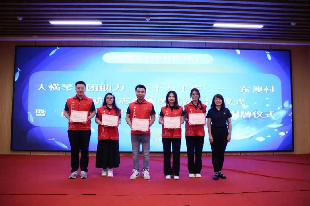 儀式上,共青團(tuán)珠海市委員會(huì)權(quán)益與社會(huì)工作部部長(zhǎng)王臻,珠海市萬(wàn)山鎮(zhèn)人民政府黨委副書記、鎮(zhèn)長(zhǎng)黃軒流,珠海大橫琴集團(tuán)有限公司黨委副書記戴碩濤,珠海市萬(wàn)山鎮(zhèn)東澳村書記石志明,萬(wàn)山海洋生物科普館館長(zhǎng)安東共同為“百千萬(wàn)工程”青年志愿服務(wù)崗揭牌,啟動(dòng)助力“百千萬(wàn)工程”——東澳村暑期講解志愿服務(wù)活動(dòng)。